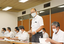 県小中学校長会からは、中谷眞人会長をはじめ、副会長、主任庶務理事、教育条件正副委員長、広報部正副部長が、県へき地教育研究協議会からは、天野明典会長、事務局長が出席しました。
